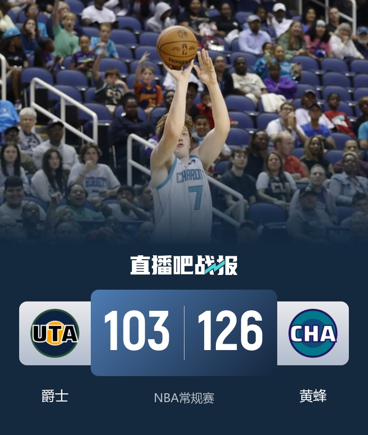 黄蜂大胜爵士 三球缺阵 布里奇斯29+4+6 马尔卡宁空砍29+7